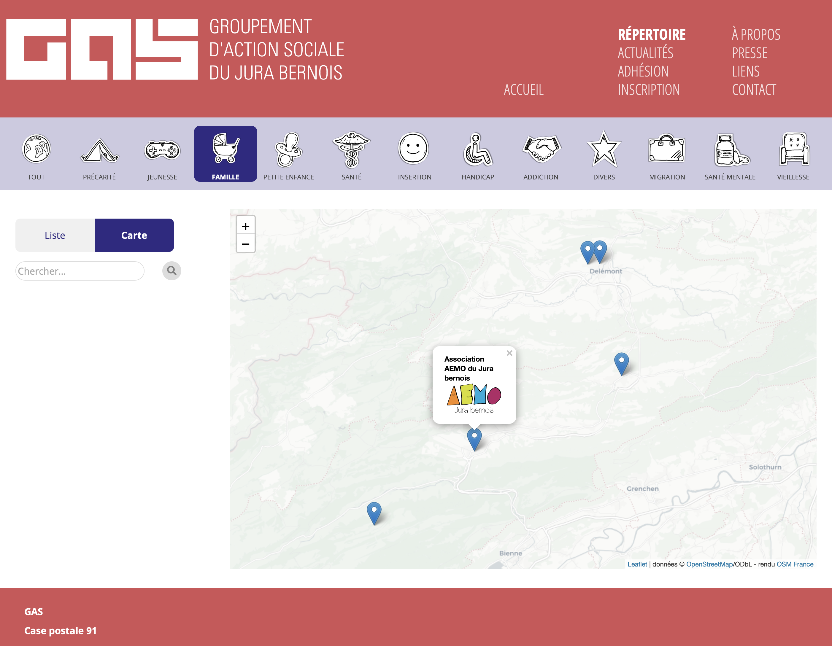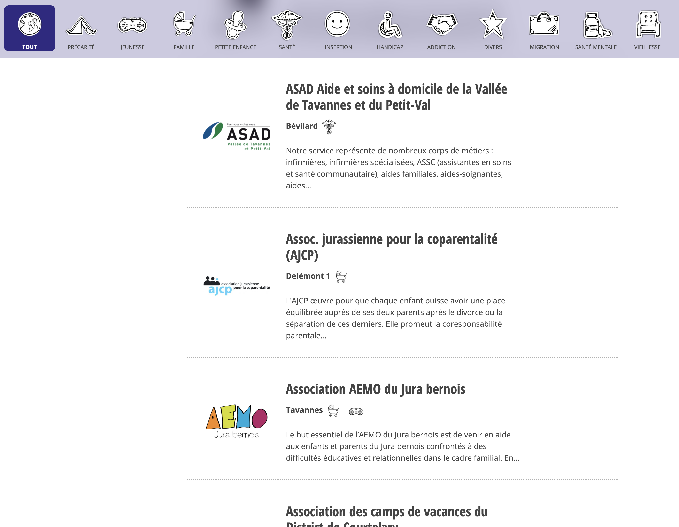 Le Groupement d’action sociale du Jura bernois promeut l'action sociale dans le Jura bernois, notamment en mettant à disposition du public un annuaire des prestataires de la région.